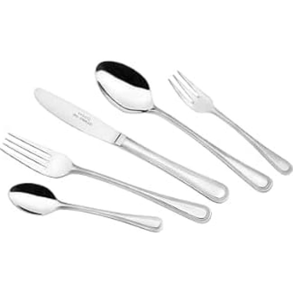 Our Pearl cutlery set with its traditional pearl rim design is made of high quality stainless steel that ensures durability and elegant shine - ideal for any occasion, from everyday dining to festive occasions. The highly polished 30 piece cutlery set includes 6 monobloc knives, 6 dinner forks, 6 dinner spoons, 6 coffee spoons and 6 cake forks - perfect for a complete dinner cutlery that meets all needs. The cutlery pieces are made of 18/10 stainless steel and finished with a classic beaded pattern all around. This material is known for its high quality, durability and consumer friendliness. The easy-care stainless steel cutlery can be easily cleaned in the dishwasher so you have more time for the things that really matter to you. The dinner knives included in the set are made of hardened blade steel, which impresses with a precise cutting performance. These knives offer long-lasting sharpness and quality, perfect for everyday use FAMILY BUSINESS Support a traditional family business that values quality, sustainability and customer satisfaction - cutlery is more than just a product to us, it is part of your dining experience. › See more product details; Product description Care: The cutlery knives and cutlery pieces are dishwasher safe. Due to aggressive detergent and different water qualities, rust may form. Our recommendation: rinse the cutlery well after each use under hot, running water with the addition of cleaner, then dry it with a cloth. This gives you a good appearance for years. Please note: clean cutlery before use. Use the cutlery only to consume food. Keep cutlery and packaging materials away from children. All lengths are approx. Information and may vary due to production. Subject to technical changes.; Product description Care: The cutlery knives and cutlery pieces are dishwasher safe. Due to aggressive detergent and different water qualities, rust may form. Our recommendation: rinse the cutlery well after each use under hot, running water with the addition of cleaner, then dry it with a cloth. This gives you a good appearance for years. Please note: clean cutlery before use. Use the cutlery only to consume food. Keep cutlery and packaging materials away from children. All lengths are approx. Information and may vary due to production. Subject to technical changes.; Care: The cutlery knives and cutlery pieces are dishwasher safe. Due to aggressive detergent and different water qualities, rust may form. Our recommendation: rinse the cutlery well after each use under hot, running water with the addition of cleaner, then dry it with a cloth. This gives you a good appearance for years. Please note: clean cutlery before use. Use the cutlery only to consume food. Keep cutlery and packaging materials away from children. All lengths are approx. Information and may vary due to production. Subject to technical changes.