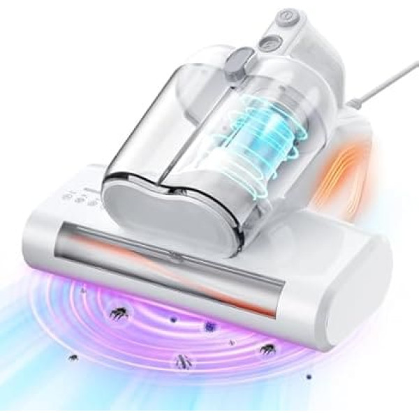 Mite Vacuum Cleaner for Mattresses with UV Light, 16 Kpa Mattress Cleaner, Bed Vacuum Cleaner with HEPA Filter, Hot Air Function, Dust Mite Sensor, Ultrasonic 600 W Handheld Vacuum Cleaner for