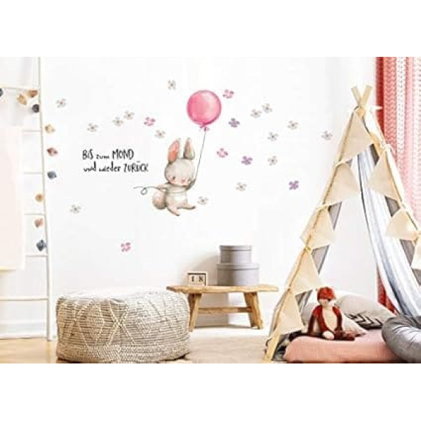 Little Deco DL228 Wall Sticker Baby Room Rabbit & Saying Bis zum Mond I L - 158 x 92 cm (W x H) I Balloon Pink Children's Pictures Decoration Nursery Girl Sticker