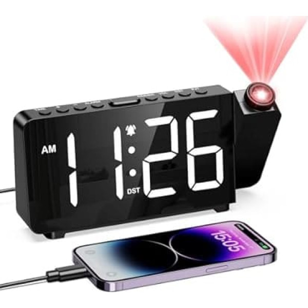 LOFICOPER Projection Alarm Clock, Digital Alarm Clock with 7.4 Inch LED Display, Adjustable Clarity & Brightness, 3 Volumes, 12/24H, Snooze, DST, LED Projection Clock, Desk Clock for Bedroom