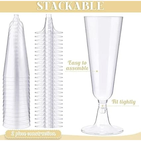 [High Quality] Made of PS high-performance crystal plastic, BPA-free, according to FDA standards, non-toxic and odourless, sturdy and durable, not easy to crack [Transparent] The cup is transparent and has modern flutes with stem design, perfect for displaying delicacies such as wine, drinks, cocktails, champagne, beer, martini, etc [Easy to use] Easy to assemble base and body, support quick cleaning after party, save time, just wash with soap and warm water and store dry stackable [Size] 5.5 (length) x 5.5 (width) x 16.5 (height) cm, capacity 150 ml, total 50 cups, can meet the requirements of any party [Applicable] Elegant appearance, suitable for weddings, receptions, parties, holidays, catered events, birthdays, baby showers and all occasions › See more product details; Product description LATERN 50 pieces 150 ml plastic champagne flutes have an elegant look and are suitable for weddings, receptions, parties, holidays, catered events, birthdays, baby showers and all occasions. Function: - Made of PS high-performance crystal plastic, BPA free, according to FDA standards, non-toxic and odourless, sturdy and durable, not easy to crack. - The cup is transparent and modern with stem design, perfect for displaying delicacies such as wine, drinks, cocktails, champagne, beer, martini etc. - Easy to assemble base and body, support quick cleaning after party, just wash with soap and warm water and store dry stackable. - Size: 5.5 (Length) x 5.5 (Width) x 16.5 (Height) cm, Capacity: 150 ml, total 50 cups, can meet the requirements of any party. Specification: Material: plastic. Colour: transparent. Size: approx. 5.5 x 5.5 x 16.5 cm. Capacity: 150ml Design number: 015001407. Package includes: 50 x Plastic Champagne Flutes; Product description LATERN 50 pieces 150 ml plastic champagne flutes have an elegant look and are suitable for weddings, receptions, parties, holidays, catered events, birthdays, baby showers and all occasions. Function: - Made of PS high-performance crystal plastic, BPA free, according to FDA standards, non-toxic and odourless, sturdy and durable, not easy to crack. - The cup is transparent and modern with stem design, perfect for displaying delicacies such as wine, drinks, cocktails, champagne, beer, martini etc. - Easy to assemble base and body, support quick cleaning after party, just wash with soap and warm water and store dry stackable. - Size: 5.5 (Length) x 5.5 (Width) x 16.5 (Height) cm, Capacity: 150 ml, total 50 cups, can meet the requirements of any party. Specification: Material: plastic. Colour: transparent. Size: approx. 5.5 x 5.5 x 16.5 cm. Capacity: 150ml Design number: 015001407. Package includes: 50 x Plastic Champagne Flutes; LATERN 50 pieces 150 ml plastic champagne flutes have an elegant look and are suitable for weddings, receptions, parties, holidays, catered events, birthdays, baby showers and all occasions. Function: - Made of PS high-performance crystal plastic, BPA free, according to FDA standards, non-toxic and odourless, sturdy and durable, not easy to crack. - The cup is transparent and modern with stem design, perfect for displaying delicacies such as wine, drinks, cocktails, champagne, beer, martini etc. - Easy to assemble base and body, support quick cleaning after party, just wash with soap and warm water and store dry stackable. - Size: 5.5 (Length) x 5.5 (Width) x 16.5 (Height) cm, Capacity: 150 ml, total 50 cups, can meet the requirements of any party. Specification: Material: plastic. Colour: transparent. Size: approx. 5.5 x 5.5 x 16.5 cm. Capacity: 150ml Design number: 015001407. Package includes: 50 x Plastic Champagne Flutes