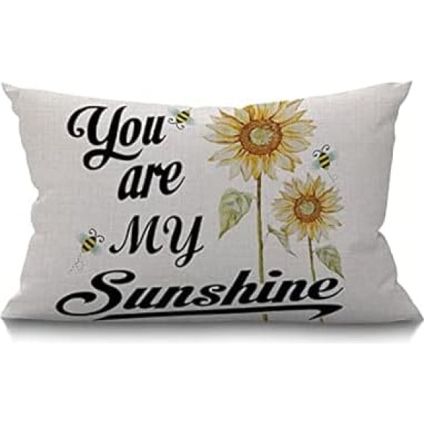 Quote You are My Sunshine Quote Bee Yellow Sunflowers Cotton Linen Decorative Rectangle Throw Pillow Case for Sofa Bed Couch 30x50cm