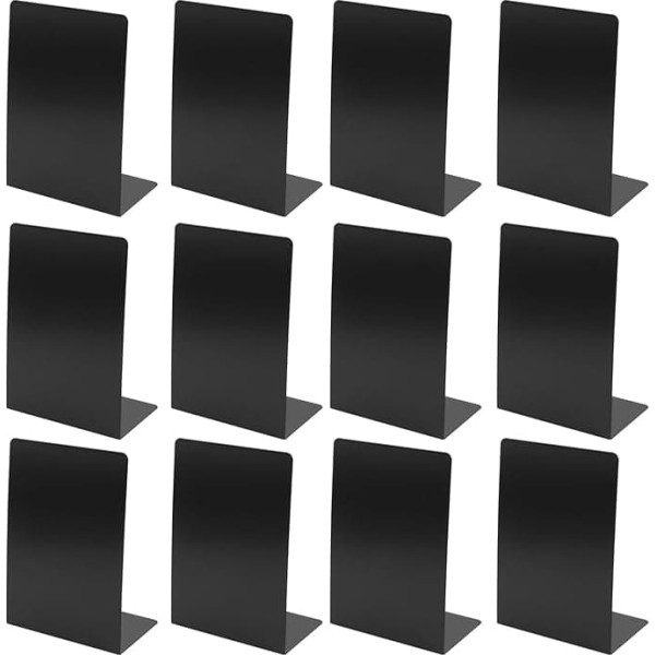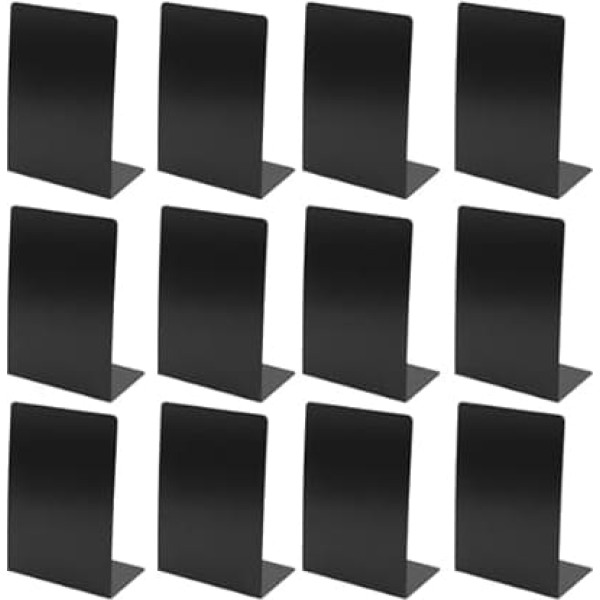 12 Pack Heavy Duty Black Metal Bookends L Shaped Bookends with Non-Slip Pads, Bookend Shelf for Home, Office and Library
