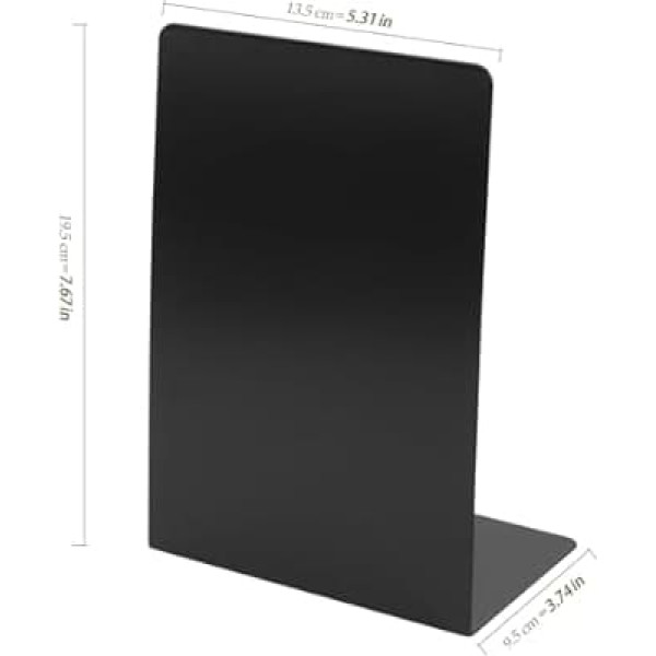 Premium Quality These black metal bookends are made of quality metal material with excellent durability and stability, high hardness, not easy to bend, deform and break, ensuring that the bookshelf can carry heavy items for a long time. Ideal Size The bookend holder measures 19.5 x 13.5 x 9.5 cm, which is both modest and practical. Can hold books, documents and magazines of all sizes, it is easy to create a neat and organized bookshelf. About the product Our L bookends are light in weight but compact in structure. You can easily move them and place them at both ends of your book or other items. You can keep your items upright and not easy to slip off. MULTI PURPOSE With our L shaped bookends, you can neatly organize your desk and shelves. They are ideal for books, magazines, documents, drawings, magazines and more. They are also perfect for gifting. STYLISH APPEARANCE The metal bookends come in a stylish black color that matches a variety of decor styles. The black color makes the bookcase more elegant and adds color to your study or office. › See more product details