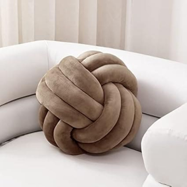 Sioloc Soft Round Ball Shaped Pillows for Home Decoration, Plush Cushion, Knot Pillow, Handmade Round Plush Cushion (13.7 inch, Brown)