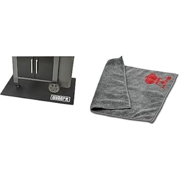 Weber 17897 Floor Mat, Grill Mat, Black & 17689 Microfibre Cloth, Cleaning, Polishing, Grey, 25.0 x 6.0 x 9.0 cm