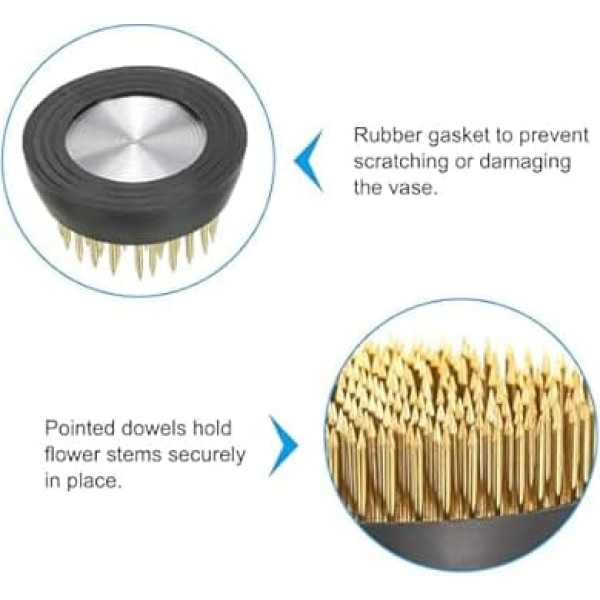 Shape: round; pin length: 1.1 cm/0.43 inches; total size: 3.5 x 1.8 cm/1.38 x 0.71 inches (diameter x height); colour: gold tone; material: brass; packing list: 5 x flower frogs for flower arrangements vase Advantage: 1. The flower arrangement flower frog is made of durable brass and has a metal base to guarantee stability and durability. 2. The pointed dowels fix the stems securely and thus offer the opportunity to create beautiful and eye-catching arrangements. A rubber ring around the base of the flower frog prevents scratches or damage to the vase. Instructions: Cut the flower stems to the size of the flower stake, insert the bottom end through the needle of the flower stake and place in the vase. APPLICATION The flower frogs are perfect for professional florists and hobby florists. Regardless of how you arrange flowers for weddings, centerpieces or other occasions, these flower frogs will bring out the flowers and show off your craft in flower binding. Note: To avoid scratches caused by sharp pens, wear gloves when using. Please confirm the correct size before placing an order. › See more product details; Product description The flower frogs are perfect for professional florists and hobby florists. Regardless of how you arrange flowers for weddings, centerpieces or other occasions, these flower frogs will bring out the flowers and show off your craft in flower binding. Specification Colour: gold tone. Material: brass. Shape: round. Pin length: 1.1 cm/0.43 inches. Total size: 3.5 x 1.8 cm/1.38 x 0.71 inches (diameter*h) Packing list: 5 x flower frogs for flower arrangements vase. Advantage: The flower arrangement flower frog is made of durable brass and has a metal base to guarantee stability and durability. 2. The pointed dowels fix the stems securely and thus offer the opportunity to create beautiful and eye-catching arrangements. A rubber ring around the base of the flower frog prevents scratches or damage to the vase. Instructions Cut the flower stems to the size of the flower stake, insert the bottom end through the needle of the flower stake and place in the vase. Note: To avoid scratches caused by sharp pens, you should wear gloves when using. The size should be checked before ordering.; Product description The flower frogs are perfect for professional florists and hobby florists. Regardless of how you arrange flowers for weddings, centerpieces or other occasions, these flower frogs will bring out the flowers and show off your craft in flower binding. Specification Colour: gold tone. Material: brass. Shape: round. Pin length: 1.1 cm/0.43 inches. Total size: 3.5 x 1.8 cm/1.38 x 0.71 inches (diameter*h) Packing list: 5 x flower frogs for flower arrangements vase. Advantage: The flower arrangement flower frog is made of durable brass and has a metal base to guarantee stability and durability. 2. The pointed dowels fix the stems securely and thus offer the opportunity to create beautiful and eye-catching arrangements. A rubber ring around the base of the flower frog prevents scratches or damage to the vase. Instructions Cut the flower stems to the size of the flower stake, insert the bottom end through the needle of the flower stake and place in the vase. Note: To avoid scratches caused by sharp pens, you should wear gloves when using. The size should be checked before ordering.; The flower frogs are perfect for professional florists and hobby florists. Regardless of how you arrange flowers for weddings, centerpieces or other occasions, these flower frogs will bring out the flowers and show off your craft in flower binding. Specification Colour: gold tone. Material: brass. Shape: round. Pin length: 1.1 cm/0.43 inches. Total size: 3.5 x 1.8 cm/1.38 x 0.71 inches (diameter*h) Packing list: 5 x flower frogs for flower arrangements vase. Advantage: The flower arrangement flower frog is made of durable brass and has a metal base to guarantee stability and durability. 2. The pointed dowels fix the stems securely and thus offer the opportunity to create beautiful and eye-catching arrangements. A rubber ring around the base of the flower frog prevents scratches or damage to the vase. Instructions Cut the flower stems to the size of the flower stake, insert the bottom end through the needle of the flower stake and place in the vase. Note: To avoid scratches caused by sharp pens, you should wear gloves when using. The size should be checked before ordering.
