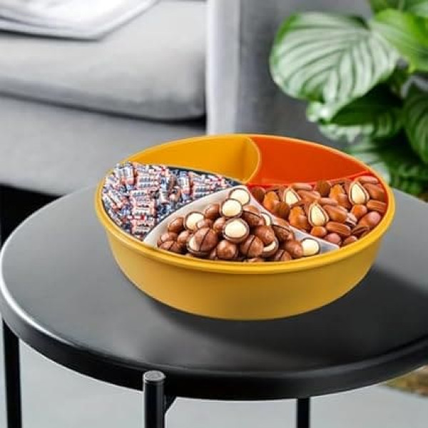 The snack tray is divided into 5 compartments for different fruits, snacks, crackers, nuts, vegetables, sauces, tortillas, chips, appetizers etc. Each compartment can also be removed individually for use and cleaning, very practical The snack bowl comes with a clear sealed lid that prevents dust or bugs from falling into the snack bowl. In addition, you can see the food in the bowl very well, which is very practical. The lid is airtight and the food can be stored longer without the taste suffering The nut shells can be used in restaurant, living room, bedroom, office, swimming pool, bathtub, picnic, travel, etc., both at work and in life, the range of applications is very wide The bowl of the snack bowl is equipped with a special non-slip texture that is easy to pick up at the end and does not slip easily. With a diameter of approx. 27.7 cm / 10.91 inches and a height of approx. 7.5 cm / 2.95 inches, it has a large capacity and can hold many different foods The fruit bowl is made of high quality PP material, odourless, burr-free, sturdy and durable, you can rest assured that you can use it. All 5 compartments can be taken out and used individually, giving you the equivalent of 6 snack bowls › See more product details; Product description Specification: Product Name: Snack Bowl/Snack Plate Material: PP plastic. Colour: yellow. Pattern: 5 colorful compartments Size: approx. 27.7 x 7.5 cm / 10.91 x 2.95 inches. Quantity: 1 piece. Features: 1. Nut shell with transparent lid, you can clearly see the food in the bowl, easy to reach. 2. Snack tray with lid can effectively prevent dust or bugs from falling into the tray. 3. Candy bowl is easy to use and clean, each compartment can be taken out and used separately. 4. Colourful and vibrant, stylish and minimalist design, ideal for decorating your pool, office or living room. Package includes: 1 x fruit plate with lid; Product description Specification: Product Name: Snack Bowl/Snack Plate Material: PP plastic. Colour: yellow. Pattern: 5 colorful compartments Size: approx. 27.7 x 7.5 cm / 10.91 x 2.95 inches. Quantity: 1 piece. Features: 1. Nut shell with transparent lid, you can clearly see the food in the bowl, easy to reach. 2. Snack tray with lid can effectively prevent dust or bugs from falling into the tray. 3. Candy bowl is easy to use and clean, each compartment can be taken out and used separately. 4. Colourful and vibrant, stylish and minimalist design, ideal for decorating your pool, office or living room. Package includes: 1 x fruit plate with lid; Specification: Product Name: Snack Bowl/Snack Plate Material: PP plastic. Colour: yellow. Pattern: 5 colorful compartments Size: approx. 27.7 x 7.5 cm / 10.91 x 2.95 inches. Quantity: 1 piece. Features: 1. Nut shell with transparent lid, you can clearly see the food in the bowl, easy to reach. 2. Snack tray with lid can effectively prevent dust or bugs from falling into the tray. 3. Candy bowl is easy to use and clean, each compartment can be taken out and used separately. 4. Colourful and vibrant, stylish and minimalist design, ideal for decorating your pool, office or living room. Package includes: 1 x fruit plate with lid