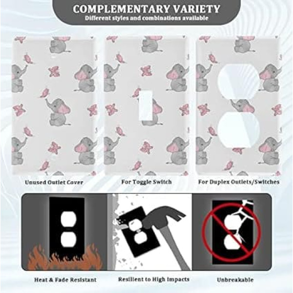 Size: unused socket cover: 73 x 118 x 6 mm Material: flame retardant polycarbonate plastic. Printing: single-sided printing (including screws) Product Description PC material, high density and high strength, safe use, not easy to deform. Equipped with screws, easy to install Feature The corners are designed with arches, and the touch is smooth and not handy. Free DIY, beautify the switch panel decoration; Unused socket cover: equipped with 2 screws Applicable scenarios: living room, kitchen, bedroom, study room and other home switches. › See more product details; Product description YYZZH Cute Elephant Baby Butterfly Animal Print on White Unused Socket Cover Switch Plate 2.9 x 4.6 Inch Light Outlet Wall Plate Decoration Wall Plate Size: unused socket cover: 73 x 118 x 6 mm. Material: flame retardant polycarbonate plastic. Printing: single-sided printing (including screws) Product Description PC material, high density and high strength, safe use, not easy to deform. Equipped with screws, easy to install. Feature The corners are designed with arches, and the touch is smooth and not handy. Free DIY, beautify the switch panel decoration; Unused socket cover: equipped with 2 screws. Applicable scenarios: living room, kitchen, bedroom, study room and other home switches. Accessory description: Unused socket cover, 2 screws. Toggle switch cover: 2 screws. Duplex socket cover: 1 screw; Product description YYZZH Cute Elephant Baby Butterfly Animal Print on White Unused Socket Cover Switch Plate 2.9 x 4.6 Inch Light Outlet Wall Plate Decoration Wall Plate Size: unused socket cover: 73 x 118 x 6 mm. Material: flame retardant polycarbonate plastic. Printing: single-sided printing (including screws) Product Description PC material, high density and high strength, safe use, not easy to deform. Equipped with screws, easy to install. Feature The corners are designed with arches, and the touch is smooth and not handy. Free DIY, beautify the switch panel decoration; Unused socket cover: equipped with 2 screws. Applicable scenarios: living room, kitchen, bedroom, study room and other home switches. Accessory description: Unused socket cover, 2 screws. Toggle switch cover: 2 screws. Duplex socket cover: 1 screw; YYZZH Cute Elephant Baby Butterfly Animal Print on White Unused Socket Cover Switch Plate 2.9 x 4.6 Inch Light Outlet Wall Plate Decoration Wall Plate Size: unused socket cover: 73 x 118 x 6 mm. Material: flame retardant polycarbonate plastic. Printing: single-sided printing (including screws) Product Description PC material, high density and high strength, safe use, not easy to deform. Equipped with screws, easy to install. Feature The corners are designed with arches, and the touch is smooth and not handy. Free DIY, beautify the switch panel decoration; Unused socket cover: equipped with 2 screws. Applicable scenarios: living room, kitchen, bedroom, study room and other home switches. Accessory description: Unused socket cover, 2 screws. Toggle switch cover: 2 screws. Duplex socket cover: 1 screw