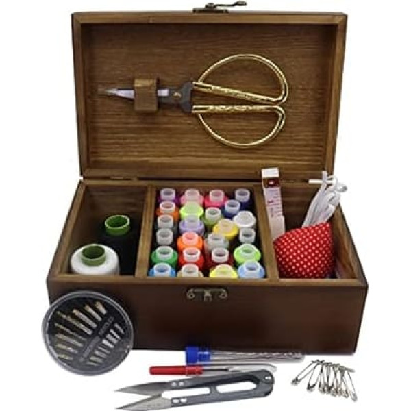 HIGH QUALITY ALL-IN-ONE SEWING KIT - This cute sewing kit contains all the necessary tools required for you basic sewing and mending at home. All things in the kit are made of high quality materials to ensure they do not perform their function. A nice set to stay at home. PRACTICAL AND BEAUTIFUL ORGANIZED SEWING KIT - All things are nicely organized in the cute wooden sewing basket. You can also put your sewing tools in the box to help yourself organize and finish the mess. The best compact sewing kit that is always available, the inner sewing supplies are easily accessible, which makes it very convenient to use every day. PACKAGE INCLUDES It includes a pair of scissors, 24 colors sewing thread, 1 extra white and 1 black thick thread, assortment of sewing needles, seam ripper, buttons, needle threader, thimble, tape measure, thread cutter and a piece of anthelmintic wood. The colours of the small tools may be random. Great Gift Choice - This small sewing kit is great for beginners as well as sewing lovers, so it is an amazing gift for mom, grandmother, little girl, frequent travelers, even for bachelors. Everything a bachelor needs to repair a few seams! › See more product details; Product description Are you tired of having malfunctions in the wardrobe? Clothing tears, button pops, seams burst, and always at the worst time? No more worries! This cool sewing starter kit is packed with all the ideas and tools you need to ensure you are prepared for any situation. Sewing Accessories with Exquisite Workmanship: ✔ 24 color thread spools: high quality and durable sewing thread. ✔ Scissors: They are sharp to cut thread or fabric. ✔ Assortment of sewing needles: high quality and hardness, not easy to break. ✔ Seam ripper: high-quality material production, sharp knife edge, easy to disassemble. ✔ Needle threader: durable, makes threading super easy. ✔ Thimble: made of copper, can withstand the tail of the pen through the fabric, effectively protect your fingers. ✔ Easy to pull threader: very intelligent, can be used for elastic band, piercing rope, cotton rope. ✔ Anthelmintic wood: the camphor wood is used to repel worms and parasites. ► Click \; Product description Are you tired of having malfunctions in the wardrobe? Clothing tears, button pops, seams burst, and always at the worst time? No more worries! This cool sewing starter kit is packed with all the ideas and tools you need to ensure you are prepared for any situation. Sewing Accessories with Exquisite Workmanship: ✔ 24 color thread spools: high quality and durable sewing thread. ✔ Scissors: They are sharp to cut thread or fabric. ✔ Assortment of sewing needles: high quality and hardness, not easy to break. ✔ Seam ripper: high-quality material production, sharp knife edge, easy to disassemble. ✔ Needle threader: durable, makes threading super easy. ✔ Thimble: made of copper, can withstand the tail of the pen through the fabric, effectively protect your fingers. ✔ Easy to pull threader: very intelligent, can be used for elastic band, piercing rope, cotton rope. ✔ Anthelmintic wood: the camphor wood is used to repel worms and parasites. ► Click \; Are you tired of having malfunctions in the wardrobe? Clothing tears, button pops, seams burst, and always at the worst time? No more worries! This cool sewing starter kit is packed with all the ideas and tools you need to ensure you are prepared for any situation. Sewing Accessories with Exquisite Workmanship: ✔ 24 color thread spools: high quality and durable sewing thread. ✔ Scissors: They are sharp to cut thread or fabric. ✔ Assortment of sewing needles: high quality and hardness, not easy to break. ✔ Seam ripper: high-quality material production, sharp knife edge, easy to disassemble. ✔ Needle threader: durable, makes threading super easy. ✔ Thimble: made of copper, can withstand the tail of the pen through the fabric, effectively protect your fingers. ✔ Easy to pull threader: very intelligent, can be used for elastic band, piercing rope, cotton rope. ✔ Anthelmintic wood: the camphor wood is used to repel worms and parasites. ► Click \