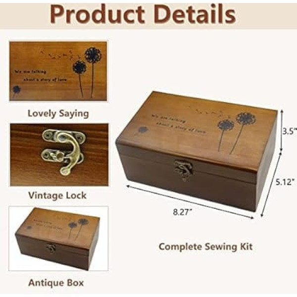 MissLytton Sewing Kit Box Basket, Wooden Hand Home Sewing Tool Kit, Beginner Universal Sewing Kit Accessories for Women, Men, Adults, Girls, Children (Retro Dandelion)
