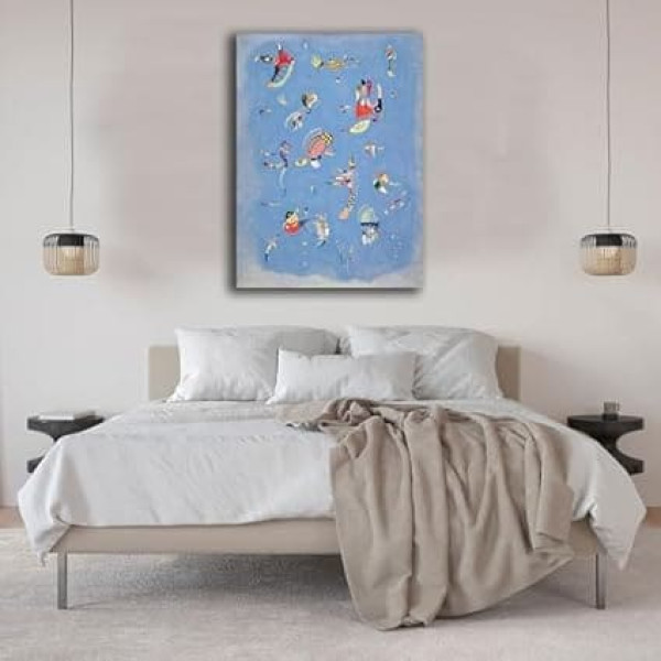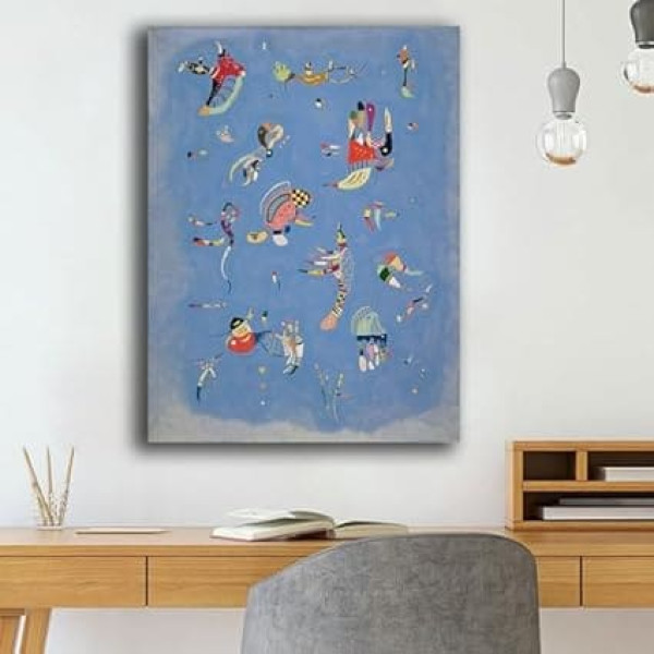 Printerland Modern Painting for Living Room KANDINSKY Style Light Blue Modern Abstract Wall Pictures XXL Large Print on Canvas Wall Decor Bedroom Kitchen (13, 30x40cm)