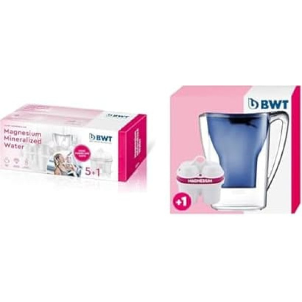 BWT Magnesium Mineralized Water Filter Cartridges, Plastic, White, Pack of 6 (1 Pack), 6 & 815073 - Penguin Table Water Filter - 2.7 L, Dark Blue - Water Filter Jug with 1 Filter Cartridge