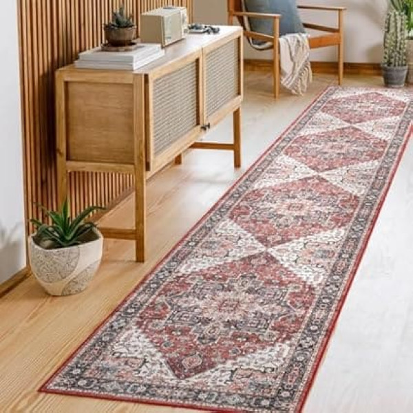 Carvapet Washable Runner Rug 60 x 300 cm Non-Slip Long Thin Rugs Area Vintage Medallion Red Rug for Living Room Bedroom Kitchen