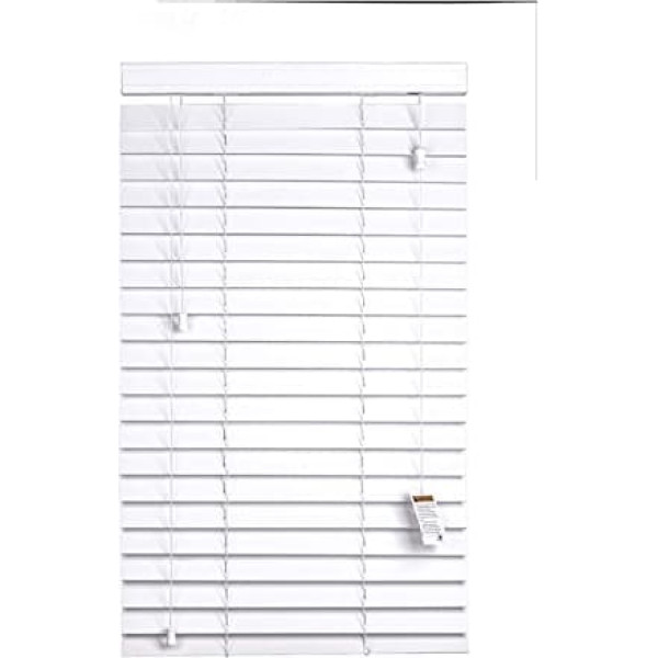 Faux wood blinds are made of PVC, making them waterproof and easy to clean with a damp cloth. They feature aluminium hardware, a headrail and a matching valance/bezel. These moisture resistant door blinds are ideal for kitchens, bathrooms or any other room. Faux Wood Window Blinds 45cm Width x 150cm Length White window blinds with string design and 50mm wide slats. These overlapping slats provide privacy and UV protection. The faux wood blinds come with multiple brackets, fixed inside, outside, top or front. Raise/lower roller blind right, open / close slats on the left, mounting material and instructions (may not be in EnglishEnglish language not guaranteed). These blinds can be easily cut to the desired width with a rotary cutter. To shorten the case, you can easily remove the lower slats from the blinds. All sizes are approximate. Please note: images are for illustration purposes only and actual product colour may vary slightly from the picture. Our faux wood blinds are heavy and may require more force to work in larger sizes. › See more product details