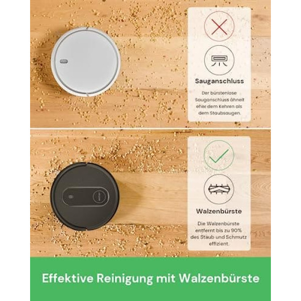 Vacuum cleaning and wiping in one: the T7 robot vacuum cleaner with wiping function has a strong suction power of 2800 Pa to quickly remove dust and dirt from hard floors and low profile carpets, and is equipped with a wiping function to effectively remove stains and liquids. The large dust container with 250 ml capacity and the water tank with 230 ml capacity provide enough capacity for comprehensive cleaning. The wiper water flow is adjustable in three levels, effectively controlling the moisture of the wipe. Long battery life and automatic charging: The T7 mopping robot is equipped with a 2500 mAh high capacity battery, which allows up to 120 minutes of continuous cleaning and covers an area of up to 1300 square metres. The robot automatically returns to the charging station for charging when the battery is empty or when the cleaning task is complete. Four cleaning modes: via the remote control and the app, the T7 vacuum cleaner with wiping function can flexibly switch between four cleaning modes and choose different cleaning ways to maximise the cleaning cover, reduce missed wiping processes and meet your daily cleaning requirements. The four modes include: (1) Automatic cleaning (2) Single room cleaning (3) Edge cleaning (4) Spot cleaning. Intelligent voice assistant: supports Siri, Alexa, IFTTT and Google Assistant voice commands. You just need to say \