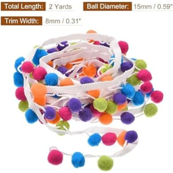 What you will receive - The package contains 2 yards of pom pom trim. The ball size is approx. 15 mm, the border width approx. 8 mm. You can freely cut the length according to your actual needs. A suitable size for your clothes and home products. Pom pom fringe trim - Made of polyester material, soft and comfortable to the touch. The colorful ball fringe trim is a decorative trim that consists of mixed colored small balls attached to a string. Unique design - The pom pom border features small decorative balls that add an embellishment of colour and texture to any project. Different color variations to choose from to make your projects stand out from others. Whether you are looking for a bold, vibrant colour or a pastel shade, we have something for everyone. Easy to use - Our ball fringe trim is easy to use. Simply sew them on your projects with a sewing machine or by hand. It is a great way to add the finishing touch to any DIY project without taking many steps. Wide application: the border is a fun and versatile decorative element that can add a cute touch to a variety of DIY craft projects such as clothing, home decor and accessories. Can be used for handmade materials, clothing and hat embellishments, home decoration, wedding decoration, bed bumpers, curtains, scarves, bags, festival decoration, etc. › See more product details; Product description Description: Pom Pom Fringe Trim - Made of polyester material, soft and comfortable to the touch. The colorful ball fringe trim is a decorative trim that consists of mixed colored small balls attached to a string. Unique design - The pom pom border features small decorative balls that add an embellishment of colour and texture to any project. Different color variations to choose from to make your projects stand out from others. Whether you are looking for a bold, vibrant colour or a pastel shade, we have something for everyone. Easy to use - Our ball fringe trim is easy to use. Simply sew them on your projects with a sewing machine or by hand. It is a great way to add the finishing touch to any DIY project without taking many steps. Wide application: the border is a fun and versatile decorative element that can add a cute touch to a variety of DIY craft projects such as clothing, home decor and accessories. Can be used for handmade materials, clothing and hat embellishments, home decoration, wedding decoration, bed bumpers, curtains, scarves, bags, festival decoration, etc. Specification: material: polyester colour: multicoloured ball diameter: 15 mm border width: 8 mm total length: 2 yards box contents: 1 x pom pom trim; Product description Description: Pom Pom Fringe Trim - Made of polyester material, soft and comfortable to the touch. The colorful ball fringe trim is a decorative trim that consists of mixed colored small balls attached to a string. Unique design - The pom pom border features small decorative balls that add an embellishment of colour and texture to any project. Different color variations to choose from to make your projects stand out from others. Whether you are looking for a bold, vibrant colour or a pastel shade, we have something for everyone. Easy to use - Our ball fringe trim is easy to use. Simply sew them on your projects with a sewing machine or by hand. It is a great way to add the finishing touch to any DIY project without taking many steps. Wide application: the border is a fun and versatile decorative element that can add a cute touch to a variety of DIY craft projects such as clothing, home decor and accessories. Can be used for handmade materials, clothing and hat embellishments, home decoration, wedding decoration, bed bumpers, curtains, scarves, bags, festival decoration, etc. Specification: material: polyester colour: multicoloured ball diameter: 15 mm border width: 8 mm total length: 2 yards box contents: 1 x pom pom trim; Description: Pom Pom Fringe Trim - Made of polyester material, soft and comfortable to the touch. The colorful ball fringe trim is a decorative trim that consists of mixed colored small balls attached to a string. Unique design - The pom pom border features small decorative balls that add an embellishment of colour and texture to any project. Different color variations to choose from to make your projects stand out from others. Whether you are looking for a bold, vibrant colour or a pastel shade, we have something for everyone. Easy to use - Our ball fringe trim is easy to use. Simply sew them on your projects with a sewing machine or by hand. It is a great way to add the finishing touch to any DIY project without taking many steps. Wide application: the border is a fun and versatile decorative element that can add a cute touch to a variety of DIY craft projects such as clothing, home decor and accessories. Can be used for handmade materials, clothing and hat embellishments, home decoration, wedding decoration, bed bumpers, curtains, scarves, bags, festival decoration, etc. Specification: material: polyester colour: multicoloured ball diameter: 15 mm border width: 8 mm total length: 2 yards box contents: 1 x pom pom trim