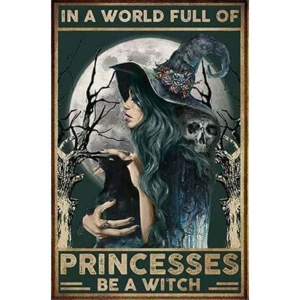 TOCMANE In A World Full of Princesses Be A Witch Halloween Metal Tin Poster Indoor Outdoor Home Bar Coffee Kitchen Wall Decor Halloween Painting Metal Plate 8x12 Inch