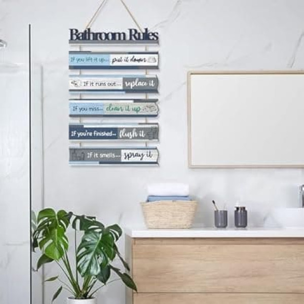 Bathroom design: our bathroom wall art set contains the words [bathroom rules] etc, with simple color can clearly see the wood grain, making your space look more attractive Widely used: our bathroom decor sets are suitable for various decoration styles, such as farmhouse style, rustic style, retro style, modern style, classic style, etc., decorate in your bathroom, laundry room, shower, laundry room, spa room, so that everyone who sees the sign can be reminded EASY TO HANG Our set of funny toilet rule signs is made of high quality rope connection, which is not easy to fall apart. You can easily install our inspirational wall art by simply measuring the hanging location in advance, and it is easy to hang and disassemble, saving time and space Reliable and sturdy: our set of toilet pictures for wall is made of high quality MDF, which is not only very safe and odorless, but also strong and durable, not easy to break and fade DIMENSIONS You will receive a set of 6 toilet rules, cube wall accessories. The main dimensions of the product are: the first wooden board is 29 x 5.5 cm and the second to sixth wooden boards are 29 x 6 cm. › See more product details