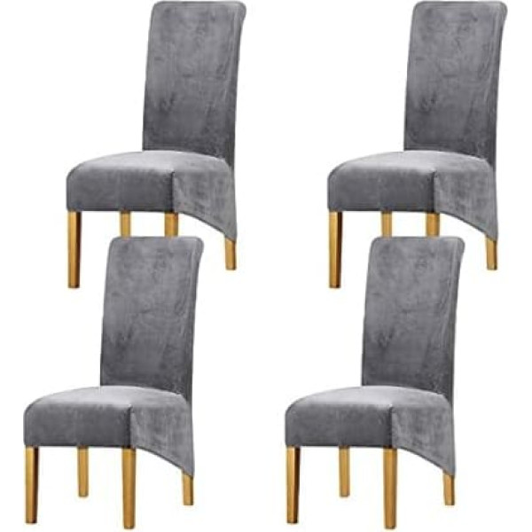 Stretchy XL Chair Covers for Dining Room Chairs, Stretch Spandex with Elastic Band Chair Cover, Velvet Large Dining Chair Slipcovers for Restaurant, Hotel, Party, Banquet (Light Grey, Set of
