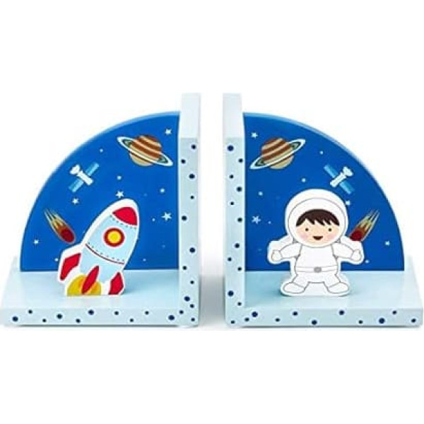 Mousehouse Gifts 3D Rocket Space Themed Wooden Children's Bookends for Boys or Girls Nursery or Bedroom