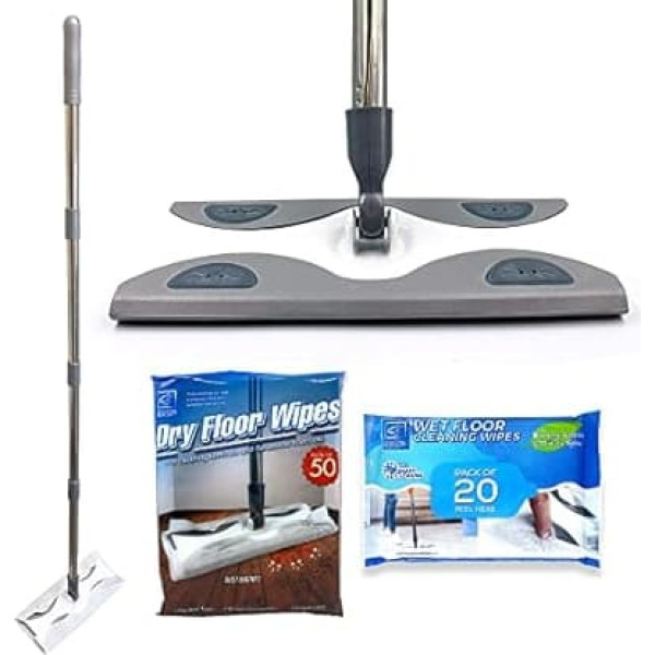 Pflegen Sie Ihren Bodenbelag - Gönnen Sie Ihrem Boden eine regelmäßige schnelle Reinigung mit diesen einfach zu bedienenden Bodenwischern mit Einwegtüchern. Es verfügt über einen einfach zu montierenden 2-teiligen Metallgriff, der zusammengesteckt und dann in den statischen Moppkopf geschraubt wird. Der Wischmopp nimmt nasse oder trockene Staubtücher auf, die nach Gebrauch entsorgt werden können. Perfekt für jeden harten Boden wie Fliesen, Laminat, Vinyl und Holz. Bequeme und schnelle einfache Reinigung: Nie wieder Ihren alten Baumwollmopp und Eimer herausnehmen. Drücken Sie einfach auf die vier Ecken des Bodenreiniger-Moppkopfes, befestigen Sie die antibakteriellen Bodentücher, und schon kann es losgehen! Es kann mit trockenen oder nassen Bodentüchern verwendet werden (die auch in diesem Starter-Set enthalten sind). Sobald der Boden sauber ist, können Sie die Staubtücher einfach entfernen und im Mülleimer entsorgen. Gehen Sie in Ecken und zwischen Möbeln: Der Weg zwischen Stuhlbeinen oder direkt in die Ecke von Küchenschränken ist schwierig. Dank dieses schwenkbaren Flachkopfmopps, der mühelos in die Seiten und Ecken jeder Sockelleiste usw. gelangen kann. Der Griff dreht sich um volle 360 Grad, was diese Mopps für die Reinigung von Böden perfekt für Esszimmer und Küche macht. Reinigungsprodukte Bundle Mop mit Einweg-Bodentüchern - Da es sich um ein Starterpaket handelt, erhalten Sie einen flachen Wischmopp, der mit 10 Probentüchern geliefert wird, plus eine Packung mit 50 trockenen Staubwischtuch-Anziehungstüchern und eine Packung mit 20 feuchten Bodentüchern. Das perfekte Reinigungsmopp-Starter-Set, um Ihren Boden makellos zu halten! Führende Marke: Entworfen von The Dustpan and Brush Store für den Endverbraucher. › See more product details; Product description Der Dustpan and Brush Store ist eine wachsende Marke, die sich auf private und gewerbliche Reinigungsmittel spezialisiert hat. Dieses Bodenwischer-Starter-Set ist ein ausgezeichnetes Beispiel für ein einfaches, aber effektives Produkt, das Ihre täglichen Kehr- und Wischaufgaben bequemer machen kann. Die Flachkopfmops für die Reinigung funktionieren perfekt in jedem harten Boden wie Laminier-, Holz-, Fliesen-, Vinyl- und Hartböden. Kommt mit einem 120 cm langen haltbaren Edelstahlgriff, um 360 Grad drehbarem Moppkopf, der leicht zu manövrieren ist und durch die schwer zugänglichen Oberflächen gelangen kann. Da es sich um ein Starterpaket handelt, wird das Paket in einem kompletten Bodenreiniger-Kit wie dem statischen Bodenwischer mit 120 cm robustem Edelstahlgriff geliefert, sowie einer Packung mit 50 Trockenwischtüchern und einer Packung mit 20 nassen großen Bodentüchern.; Product description Der Dustpan and Brush Store ist eine wachsende Marke, die sich auf private und gewerbliche Reinigungsmittel spezialisiert hat. Dieses Bodenwischer-Starter-Set ist ein ausgezeichnetes Beispiel für ein einfaches, aber effektives Produkt, das Ihre täglichen Kehr- und Wischaufgaben bequemer machen kann. Die Flachkopfmops für die Reinigung funktionieren perfekt in jedem harten Boden wie Laminier-, Holz-, Fliesen-, Vinyl- und Hartböden. Kommt mit einem 120 cm langen haltbaren Edelstahlgriff, um 360 Grad drehbarem Moppkopf, der leicht zu manövrieren ist und durch die schwer zugänglichen Oberflächen gelangen kann. Da es sich um ein Starterpaket handelt, wird das Paket in einem kompletten Bodenreiniger-Kit wie dem statischen Bodenwischer mit 120 cm robustem Edelstahlgriff geliefert, sowie einer Packung mit 50 Trockenwischtüchern und einer Packung mit 20 nassen großen Bodentüchern.; Der Dustpan and Brush Store ist eine wachsende Marke, die sich auf private und gewerbliche Reinigungsmittel spezialisiert hat. Dieses Bodenwischer-Starter-Set ist ein ausgezeichnetes Beispiel für ein einfaches, aber effektives Produkt, das Ihre täglichen Kehr- und Wischaufgaben bequemer machen kann. Die Flachkopfmops für die Reinigung funktionieren perfekt in jedem harten Boden wie Laminier-, Holz-, Fliesen-, Vinyl- und Hartböden. Kommt mit einem 120 cm langen haltbaren Edelstahlgriff, um 360 Grad drehbarem Moppkopf, der leicht zu manövrieren ist und durch die schwer zugänglichen Oberflächen gelangen kann. Da es sich um ein Starterpaket handelt, wird das Paket in einem kompletten Bodenreiniger-Kit wie dem statischen Bodenwischer mit 120 cm robustem Edelstahlgriff geliefert, sowie einer Packung mit 50 Trockenwischtüchern und einer Packung mit 20 nassen großen Bodentüchern.