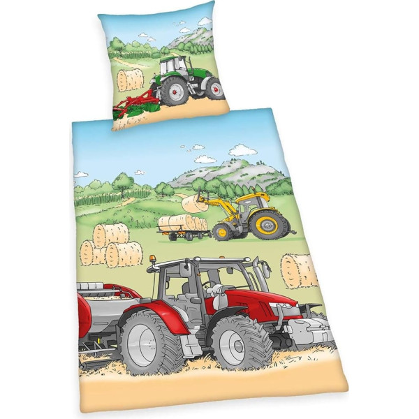 Tractor Bed Linen Set, Pillow Case 70 X 90 cm, Duvet Cover 140 X 200 cm, Material: 100% Cotton, Renforcé, With Easy-Running Zip