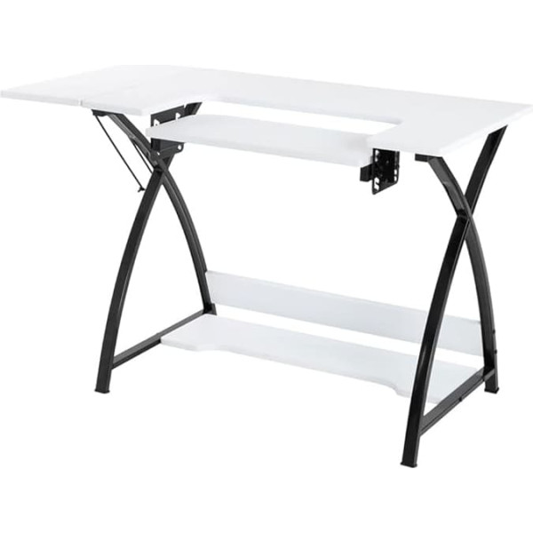 Table sewing cabinet The design combines a sewing station with a computer desk. The structure contributes to its durability and stability. Side and bottom shelves provide storage space and an extensive work area. Drop down platform with 6 adjustable positions › See more product details