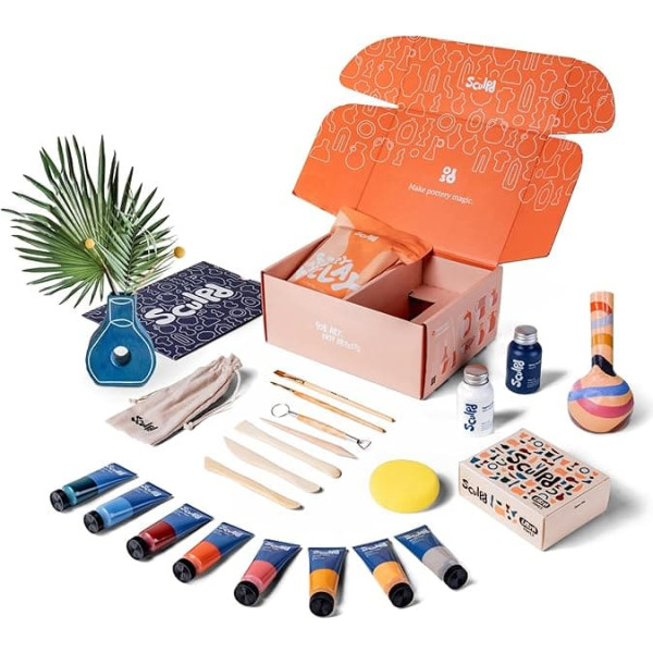 COMPLETE AIR DRY CLAY SET Your Sculpd Home pottery set includes everything for 2 people to easily shape, paint, paint and paint beautiful waterproof flower pots, sculptures, vases and more. WHAT YOU GET: 2kg premium air drying clay, 8 acrylic paint tubes, 5 modelling tools, 2 fine brushes, waterproof gloss varnish, white paint, pottery sponge, beginner guide and video tutorials. THE BEST AIR DRYING CLAY We use only the highest quality air drying pottery clay. It is natural, soft, lightweight and very easy to shape. Sculpd's premium air drying clay requires no oven or pottery stove. Enjoy a beautiful natural stone grey colour with a smooth and easy to paint finish. MUCH TO SHARE FOR TWO Experience the perfect pottery gift, date night kit & hobby craft kit. Our video tutorials make clay modeling and painting fun and easy for everyone, including beginners. PREMIUM ACRYLIC PAINT: includes 8 earthy pastel color tubes. Mix them together to create any color on your ceramic and ceramic. Our high-quality art paints ensure long-lasting vibrancy of your creations. › See more product details