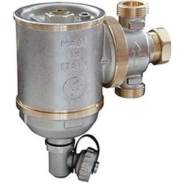 Complete set (de-sluster + ball valve + telescopic socket) › See more product details; Product description Cyclone and magnetic decoder, equipped with a swivel inlet/outlet connection with ISO 228 male threaded connections. The compact design with 3/4 inch connections is particularly suitable for placement under wall boilers. Complete with swivel outlet tap, magnet and magnetic holder, female threaded plug with self-locking for unused inlet route Brass body and magnetic case, cyclone insert made of high-strength synthetic material, 300 μm filter made of stainless steel AISI 304, seals made of EPDM, neodymium magnet; Product description Cyclone and magnetic decoder, equipped with a swivel inlet/outlet connection with ISO 228 male threaded connections. The compact design with 3/4 inch connections is particularly suitable for placement under wall boilers. Complete with swivel outlet tap, magnet and magnetic holder, female threaded plug with self-locking for unused inlet route Brass body and magnetic case, cyclone insert made of high-strength synthetic material, 300 μm filter made of stainless steel AISI 304, seals made of EPDM, neodymium magnet; Cyclone and magnetic decoder, equipped with a swivel inlet/outlet connection with ISO 228 male threaded connections. The compact design with 3/4 inch connections is particularly suitable for placement under wall boilers. Complete with swivel outlet tap, magnet and magnetic holder, female threaded plug with self-locking for unused inlet route Brass body and magnetic case, cyclone insert made of high-strength synthetic material, 300 μm filter made of stainless steel AISI 304, seals made of EPDM, neodymium magnet