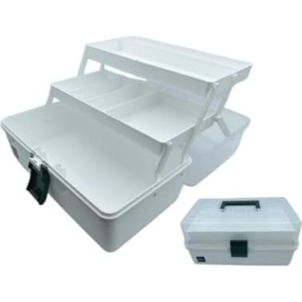 Multifunctional Organiser with Handle, Three-Level Folding Tool Box, Craft Box, Sewing Accessory Organiser, Medicine Box, First Aid Box for Home (White, 32.5 cm)