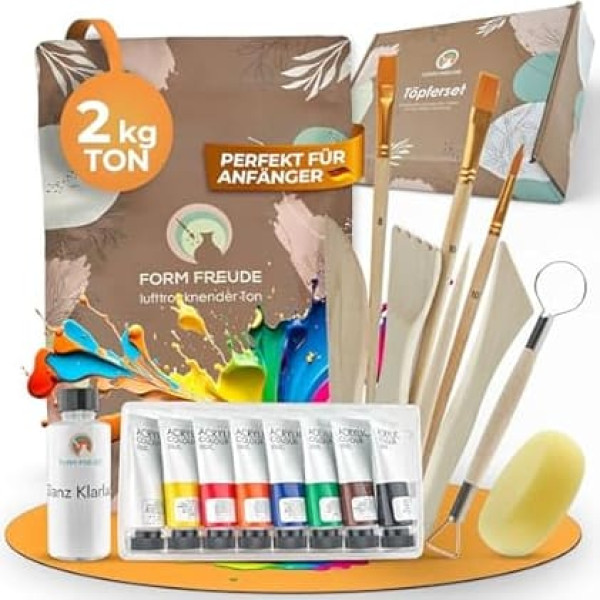 FORM FREUDE Pottery Set for Home - DIY Creative Set with Air-Drying Clay, Modelling Tools and Instructions - Potters without Burning - Craft Set for Beginners and Gift Set for Creative Minds