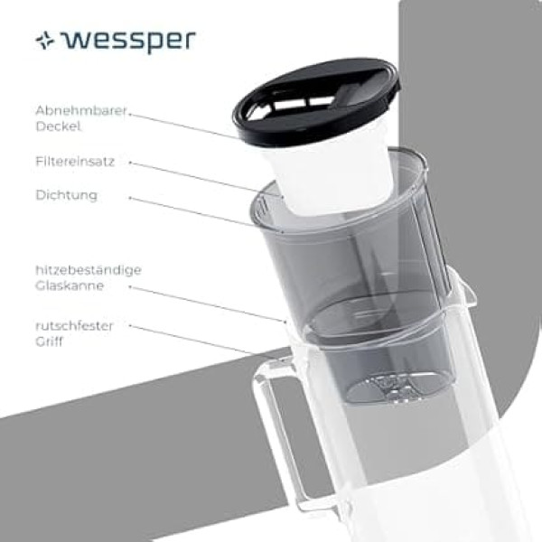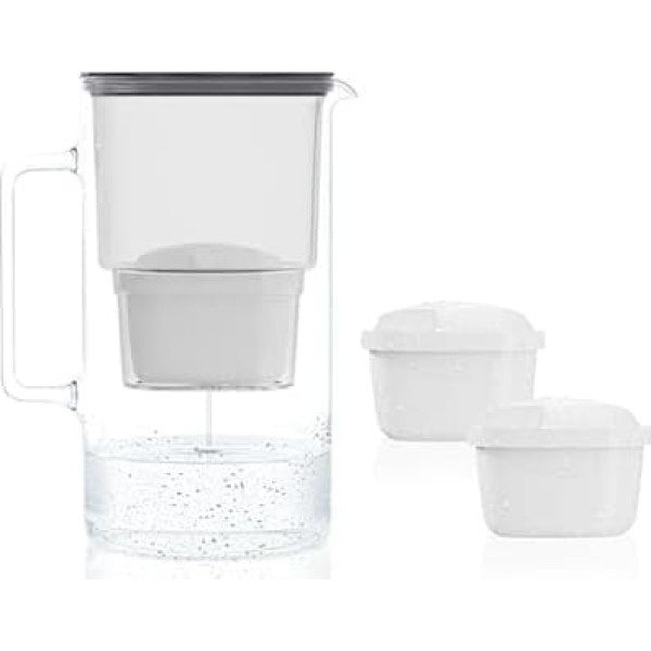 The innovative water carafe - made of resistant to high temperature fluctuations borosilicate glass protects the drink from impurities thanks to the low solubility and does not change the taste 3 in 1 water filter glass jug - multifunctional jug for use as: 1) water filter jug, 2) stylish glass carafe for dinner, 3) glass jug of water for tea, cool drinks (even hot) or cooking Easy to use – the filter jugs for drinking water can be easily filled by turning the lid with your finger. The filter water jug is dishwasher safe. All parts come into contact with water are BPA free Design - The simple and great design of the water filter jug is an eye-catcher on the kitchen and living room table. Stylish and eco-friendly alternative to water bottles Features - The water jug with filter reduces: chlorine, microparticles and taste-impairing substances in tap water - preserves valuable minerals thanks to activated carbon from coconut shells, compatible with Brita Maxtra filter cartridges and many more › See more product details