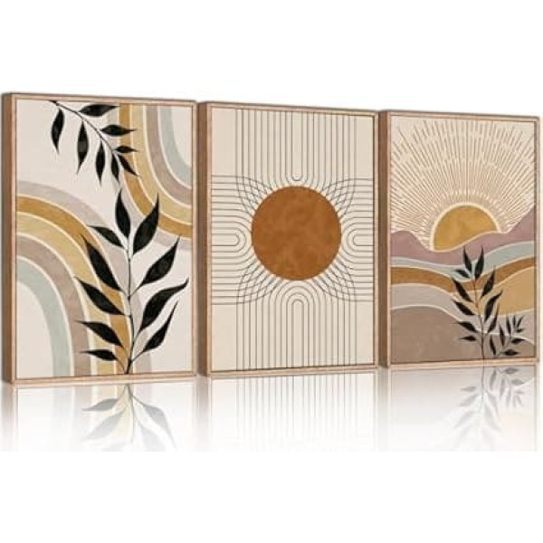Framed bohemian canvas paintings featuring natural abstract illustrations, simple geometric lines and a combination of orange and beige tones for a rich bohemian look. BEAUTIFUL AND DURABLE The framed wall art is made of canvas, durable and long lasting. High quality standards are maintained at every step, from the materials used to the production process. SUITABILITY FOR VERSATILE DECORATION This set of vintage style framed canvas wall pictures can match different home styles, creating an artistic atmosphere in bedroom, living room, study, office or other occasions. This set of framed canvas pictures is 30 x 40 cm in size and is easy to hang. Each picture comes with a handy small hook so you can hang the pictures effortlessly. Simply measure the space on the wall and hang the artwork when it arrives at your place. PROMISE: There is no difference in the product itself, but the color may be slightly different due to the different monitors of each user. If the package is damaged during delivery, please feel free to contact us. › See more product details; Product description Discover the beauty of nature in your home with this stunning set of 3 framed canvas wall art boho. Each picture measures 30 x 40 cm and presents a harmonious combination of natural abstract illustrations, simple geometric lines and warm, earthy tones. The framed wall art is made of high quality canvas, providing a durable, beautiful decoration for your bedroom, living room, study or office. Each picture comes with a handy hook so you can hang them easily. Create an artistic atmosphere in your home with this versatile and elegant wall decor set.; Product description Discover the beauty of nature in your home with this stunning set of 3 framed canvas wall art boho. Each picture measures 30 x 40 cm and presents a harmonious combination of natural abstract illustrations, simple geometric lines and warm, earthy tones. The framed wall art is made of high quality canvas, providing a durable, beautiful decoration for your bedroom, living room, study or office. Each picture comes with a handy hook so you can hang them easily. Create an artistic atmosphere in your home with this versatile and elegant wall decor set.; Discover the beauty of nature in your home with this stunning set of 3 framed canvas wall art boho. Each picture measures 30 x 40 cm and presents a harmonious combination of natural abstract illustrations, simple geometric lines and warm, earthy tones. The framed wall art is made of high quality canvas, providing a durable, beautiful decoration for your bedroom, living room, study or office. Each picture comes with a handy hook so you can hang them easily. Create an artistic atmosphere in your home with this versatile and elegant wall decor set.