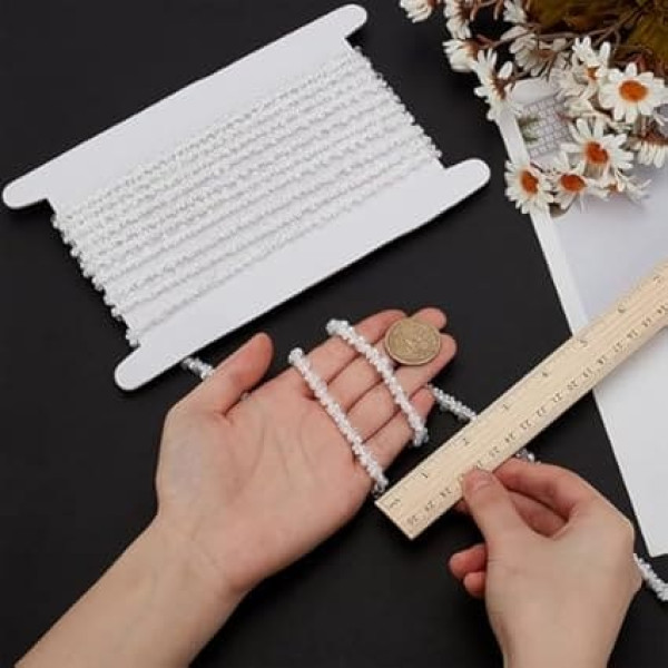 FINGERINSPIRE 5 Yards White Pearl Trim 1/4 Inch Wide Beaded Trim Trim Large Beads Decorative Ribbon Edge Trim for Wedding Dress Sewing Craft DIY Decoration