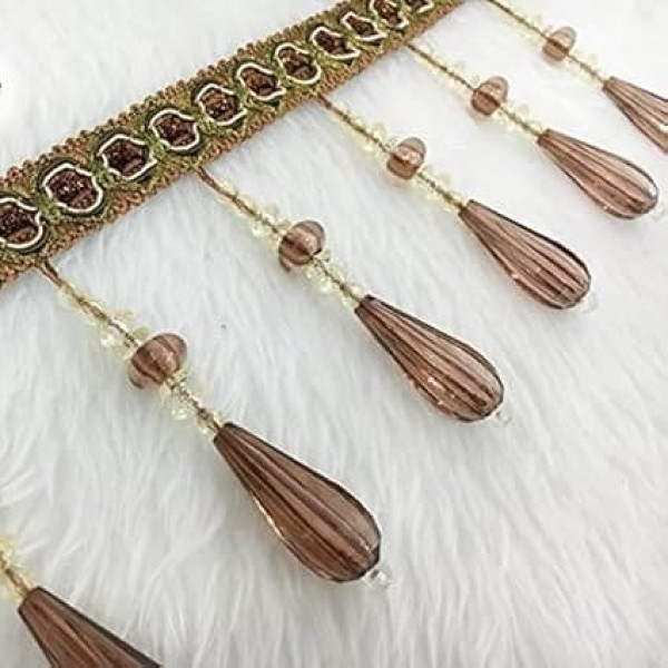 Curtain Fringe Trim, Fringe Trim, 9.9 m, Lace Fringe Trim with Crystal Beads, Braided Bead Pendants, Tassel Trim, Fringe for Curtain/Lampshade Edge Decor(Brown)