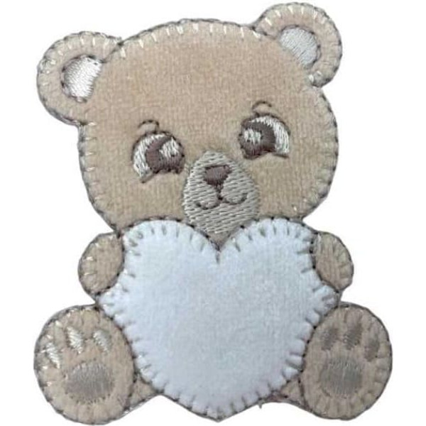 TOMASELLI MERCERIA Appliqué Iron-On Embroidered Teddy Bear White Heart Velure Fabric High 6 x 5.5 cm Beige
