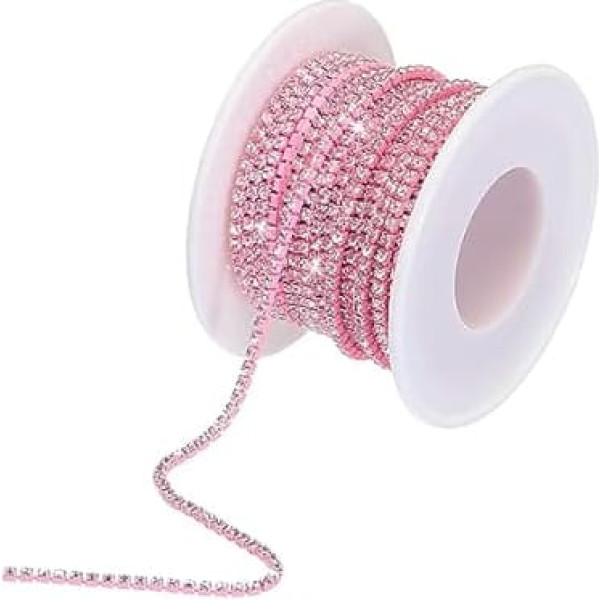 QUARKZMAN 10 Yard 2 mm Crystal Rhinestone Diamond Closed Chain Trimming Trimming Claws Cup Chain for Sewing Crafts Jewellery Wedding Decorations White Jewels Light Pink Base