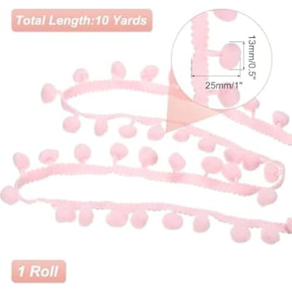 QUARKZMAN 10 Yards Pom Pom Trim Ribbon, 1 Inch Wide Light Pink Pom Pom Ball Fringe Trim Sewing Fringe Fabric Trim Ribbon for DIY Crafts Curtain Clothes Pillow Home Decoration