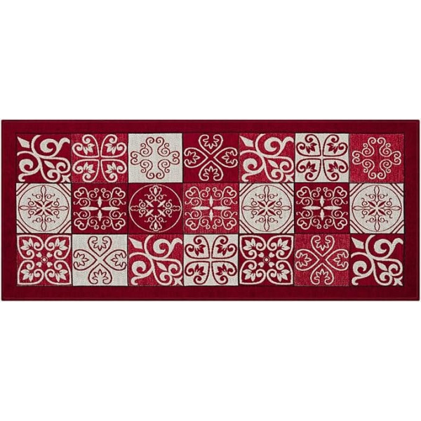 Design – The kitchen runner is suitable for decorating the interior of all rooms, from rustic to modern. The kitchen track by Suardi has a majolica design in red tile look. Non-slip - The kitchen track has a practical non-slip base that allows maximum grip and prevents slipping. This non-slip kitchen mat measures 55 x 80 cm. 100% Made in Italy - The non-slip kitchen mat is strictly 100% made in Italy, with careful care for retailing, using modern and innovative industrial technologies HIGH QUALITY FABRIC - Our kitchen rugs are made of chenille fabric with jacquard finish. The fabric is dirt-repellent. Composition: 38% Cotton, 34% Polyester, 28% Acrylic It is recommended to iron the product after washing to activate the stains. Carpet weight: 850 g/m. WASHING INSTRUCTIONS: The kitchen runner can be easily washed at 40 degrees in the washing machine. Our washable kitchen runners can also be ironed at a low temperature. Any fold marks from the pack can be easily removed with a simple steam iron on the side of the design. › See more product details