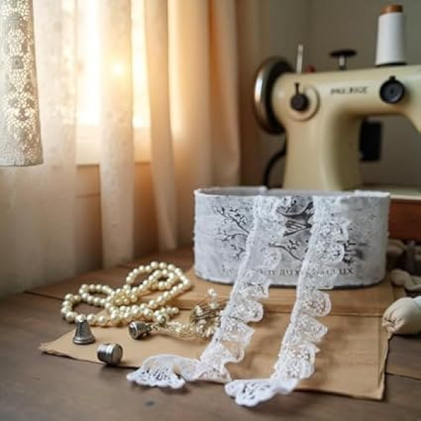 White 10 Meters Pleated Organza Lace Edge Gathered Mesh Ribbon 2cm Wide Vintage Style Border Fabric Embroidered Applique Sewing Craft Wedding Bridal Dress Embellishment DIY Decoration