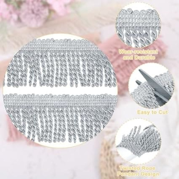 What you get: the package contains 1 piece sewing fringe trim, with a length of 5 yards and a width of 65 mm / 2.56 inches. [Material] - Our fringe trimmings are made of polyester material, which has excellent abrasion resistance, soft grip, high water resistance, durability, easy washing and drying properties and does not fade easily. [Design] - These trimmings are designed with twisted rope drape design, simple and elegant, reliable to use. Different colours can meet your DIY craft needs, suitable for different curtain styles and can increase the beauty of your home decoration. [Easy to use] - It is very convenient to use, just sew the fringe trim to the fabric by hand or machine or apply fabric glue to the surface and place the trim on the glue until it dries. [Wide Application] - Ideal for decorating curtains, pillows, pillows, handbags, lampshades, blankets, valance edges and other daily home accessories to create craftsmanship that suits your style. › See more product details; Product description Description: [Material] - Our fringe trimmings are made of polyester material, which has excellent abrasion resistance, soft grip, high water resistance, durability, easy washing and drying properties and does not fade easily. [Design] - These trimmings are designed with twisted rope drape design, simple and elegant, reliable to use. Different colours can meet your DIY craft needs, suitable for different curtain styles and can increase the beauty of your home decoration. [Easy to use] - It is very convenient to use, just sew the fringe trim to the fabric by hand or machine or apply fabric glue to the surface and place the trim on the glue until it dries. [Wide Application] - Ideal for decorating curtains, pillows, pillows, handbags, lampshades, blankets, valance edges and other daily home accessories to create craftsmanship that suits your style. Specifications: Material: polyester. Colour: silver. Length: 5 yards Width: 65mm/2.56\; Product description Description: [Material] - Our fringe trimmings are made of polyester material, which has excellent abrasion resistance, soft grip, high water resistance, durability, easy washing and drying properties and does not fade easily. [Design] - These trimmings are designed with twisted rope drape design, simple and elegant, reliable to use. Different colours can meet your DIY craft needs, suitable for different curtain styles and can increase the beauty of your home decoration. [Easy to use] - It is very convenient to use, just sew the fringe trim to the fabric by hand or machine or apply fabric glue to the surface and place the trim on the glue until it dries. [Wide Application] - Ideal for decorating curtains, pillows, pillows, handbags, lampshades, blankets, valance edges and other daily home accessories to create craftsmanship that suits your style. Specifications: Material: polyester. Colour: silver. Length: 5 yards Width: 65mm/2.56\; Description: [Material] - Our fringe trimmings are made of polyester material, which has excellent abrasion resistance, soft grip, high water resistance, durability, easy washing and drying properties and does not fade easily. [Design] - These trimmings are designed with twisted rope drape design, simple and elegant, reliable to use. Different colours can meet your DIY craft needs, suitable for different curtain styles and can increase the beauty of your home decoration. [Easy to use] - It is very convenient to use, just sew the fringe trim to the fabric by hand or machine or apply fabric glue to the surface and place the trim on the glue until it dries. [Wide Application] - Ideal for decorating curtains, pillows, pillows, handbags, lampshades, blankets, valance edges and other daily home accessories to create craftsmanship that suits your style. Specifications: Material: polyester. Colour: silver. Length: 5 yards Width: 65mm/2.56\