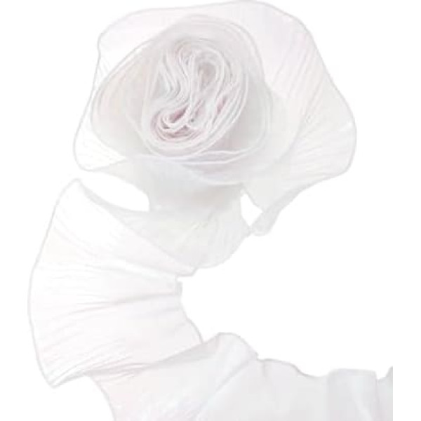 QUARKZMAN 5,5" x 11 Yards Rüschen Plissierte Organza-Borte Irisierende Plissierte Spitzenborte Band Nähen Spitzenstoff-Borte für DIY Handwerk Kleid Hochzeit Geschenk Hausdekoration, Weiß