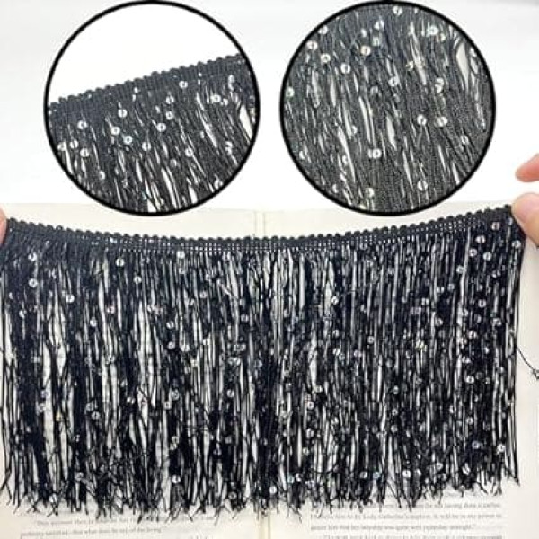 OHYER 3 Metres Long (x 15 cm Diameter) Lace Ribbon Wide Sequins Tassel Cut Fringe Fringe Trim Fringe Fringe Trim Fringe Ribbon Tinsel Ribbon for DIY (Black)