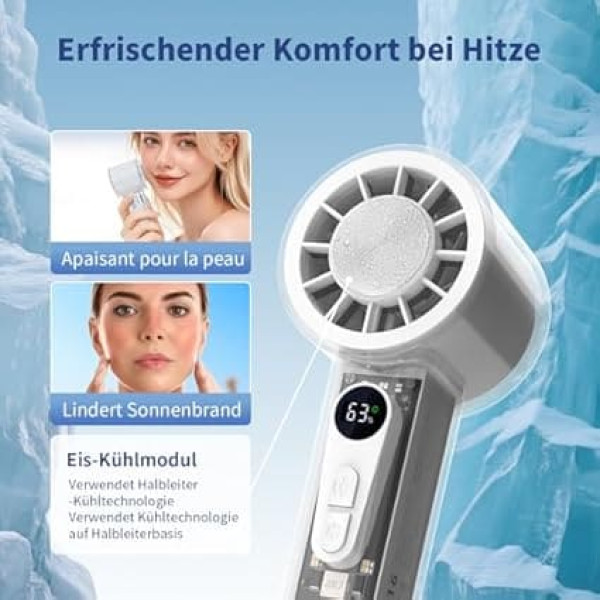 tempsnug Tragbarer Handheld-Turbo-Ventilator mit Eiskühlung, 5000mAh-Akku, Digitalanzeige - Perfekt für Reisen, Outdoor-Einsatz, tolles Geschenk für Männer und Frauen