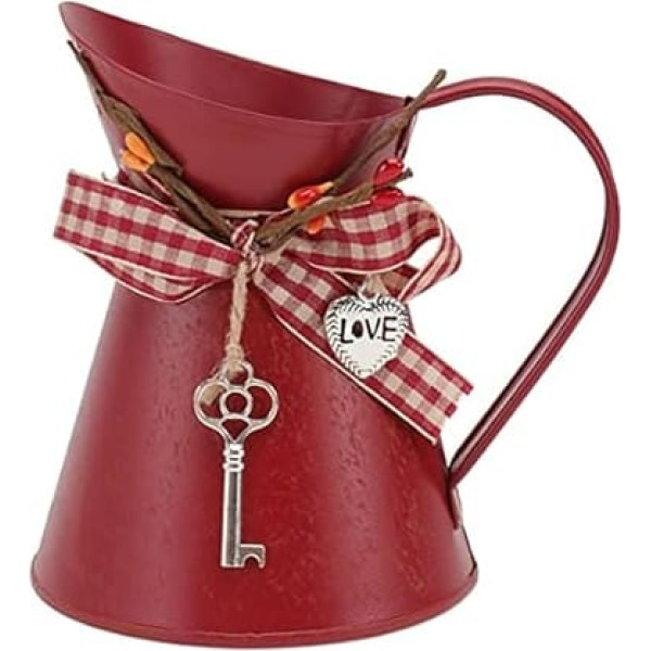 Metall-Blumenvase, französischer Landhausstil, Blumeneimer, rustikal, verzinkt, Mini-Vasen, Tischdekoration für Zuhause, Innen- und Außenbereich, Rot