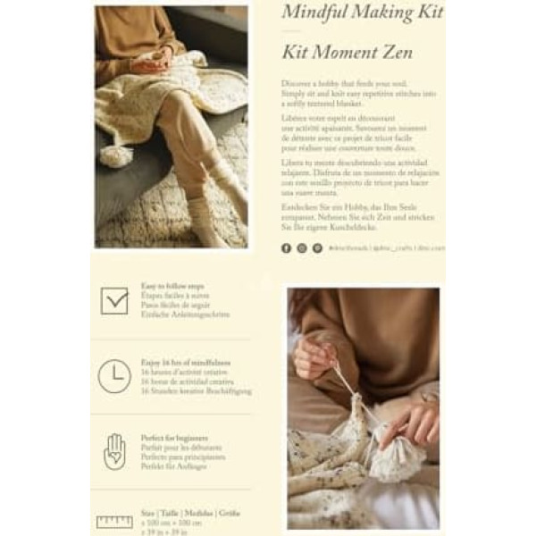 Relax, unwind and calm your mind with this knitting kit for beginners that will soothe your soul with hours of Mindful Making. Beginner-friendly knitting instructions and video knitting instructions gently guide you from casting to the finished knitting set. The finest materials from DMC make every stitch more mindful and create a beautiful knitted hat and tube scarf. Everything you need in one box, including 2 skeins of 100% acrylic yarn (100g), 5mm/US 8 knitting needles, sewing needle, and easy instructions to create your Together knitted hat and snooze hat. Embroidery, breathe, and repeat when you discover more mindfulness projects, tutorials and inspiration at dmc.com › See more product details; Product description Enjoy the creative process just as much as the last piece with this Mindful Making knitting kit. Inspired by the practice of mindfulness, this set has been specially designed to help you relax and reconnect with each rhythmic sting. This set includes a timeless design, simple stitches and easy-to-follow instructions (English language not guaranteed). Ideal for beginners.; Product description Enjoy the creative process just as much as the last piece with this Mindful Making knitting kit. Inspired by the practice of mindfulness, this set has been specially designed to help you relax and reconnect with each rhythmic sting. This set includes a timeless design, simple stitches and easy-to-follow instructions (English language not guaranteed). Ideal for beginners.; Enjoy the creative process just as much as the last piece with this Mindful Making knitting kit. Inspired by the practice of mindfulness, this set has been specially designed to help you relax and reconnect with each rhythmic sting. This set includes a timeless design, simple stitches and easy-to-follow instructions (English language not guaranteed). Ideal for beginners.