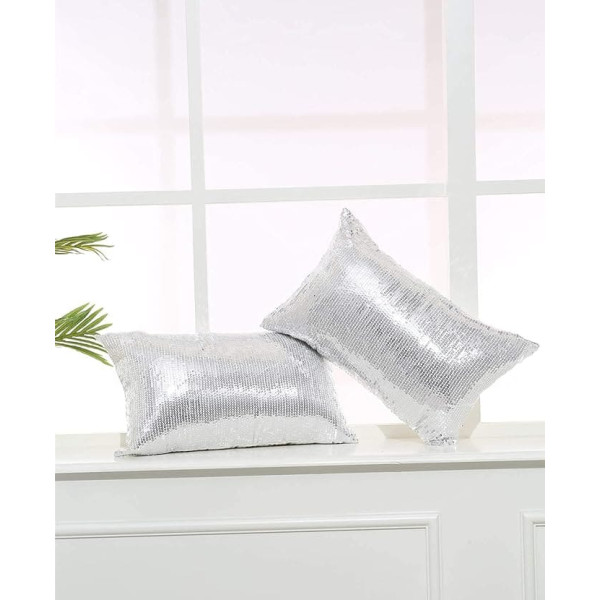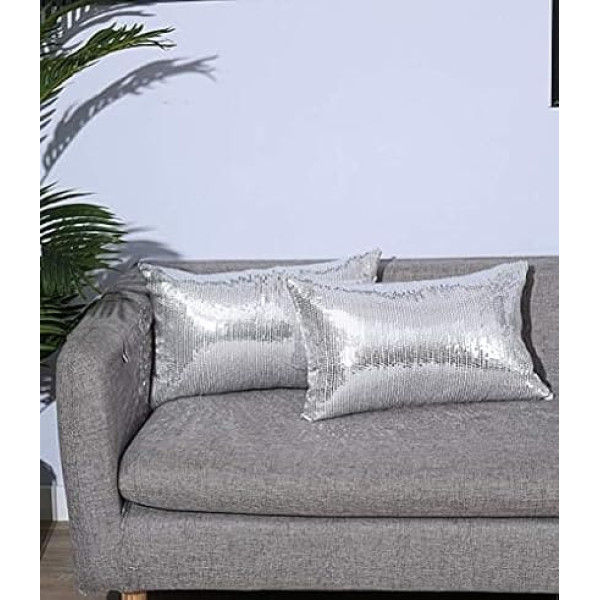 Eternal Beauty | Sequin Pillow Covers 2 Pack Decorative Silver Throw Pillow Covers Square Sparkling Cushion Covers for Home Decor with Hidden Zipper 30x50cm