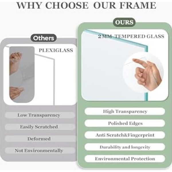 BLACK PICTURE FRAME A classic thin picture frame with tempered glass window is the ideal way to display your poster or family photo, which can protect your beloved photos from moisture, dust and scratches BLACK FRAME The picture frames for wall are beautifully finished and come with fixing hooks on the back for hanging in portrait and landscape orientation. It is easy to insert and secure pictures, looks classy and stylish on the wall Accurate Size The frame size is exactly 16 x 20 inches, suitable for artwork, fashion prints, diamond paintings, cross stitches or puzzles. When assembled, the simple frame does not distract from the pictured motif Matte color: the frame color is soft, matte black with a delicate grain, which makes it blend well with modern or traditional furnishings, creating a warm environment in your living room, bedroom, hallway, apartment or office Safe packaging: the frame is tightly wrapped in cardboard and protective corners, and the box is well protected from possible damage in transit. Also you can reuse the packaging to send your frames to the recipient › See more product details; Product description 20x16 picture frame, classic, stylish and modern large picture frame, easily fits into most color schemes and subtly highlights the actual image. A simple, simple frame makes the picture the main interest. WELL BUILT AND TEXTURETempered Glass Metal hook for hanging. Sturdy moulding and MDF backboard. Easy to use. Real glass can make your photos brighter and clearer. It is easy to open and place your photo and securely close on the back. Hangers are attached so they can be hung in portrait or landscape orientation. Wide Applications: Display your precious photos, certificates, postcards, oil paintings... Fits all decor from living room to bathroom, as a simple frame for simple looks. Frame a picture for many occasions: birthdays, graduations, holidays, anniversaries and so on.; Product description 20x16 picture frame, classic, stylish and modern large picture frame, easily fits into most color schemes and subtly highlights the actual image. A simple, simple frame makes the picture the main interest. WELL BUILT AND TEXTURETempered Glass Metal hook for hanging. Sturdy moulding and MDF backboard. Easy to use. Real glass can make your photos brighter and clearer. It is easy to open and place your photo and securely close on the back. Hangers are attached so they can be hung in portrait or landscape orientation. Wide Applications: Display your precious photos, certificates, postcards, oil paintings... Fits all decor from living room to bathroom, as a simple frame for simple looks. Frame a picture for many occasions: birthdays, graduations, holidays, anniversaries and so on.; 20x16 picture frame, classic, stylish and modern large picture frame, easily fits into most color schemes and subtly highlights the actual image. A simple, simple frame makes the picture the main interest. WELL BUILT AND TEXTURETempered Glass Metal hook for hanging. Sturdy moulding and MDF backboard. Easy to use. Real glass can make your photos brighter and clearer. It is easy to open and place your photo and securely close on the back. Hangers are attached so they can be hung in portrait or landscape orientation. Wide Applications: Display your precious photos, certificates, postcards, oil paintings... Fits all decor from living room to bathroom, as a simple frame for simple looks. Frame a picture for many occasions: birthdays, graduations, holidays, anniversaries and so on.