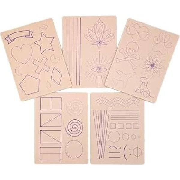 Pre Printed Tattoo Practice Halves with Stencils 3mm Fake Skins for Tattooing (5 Pack) Beginner Kit